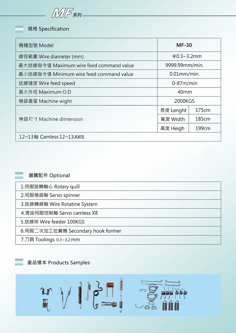 多軸彈簧機特性: